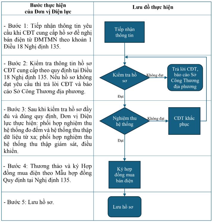 Đơn vị Điện lực tiếp nhận thông tin về công suất và địa điểm lắp đặt theo thông báo của chủ đầu tư (CĐT) để theo dõi, thống kê theo trình tự như sau: